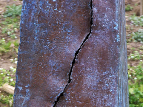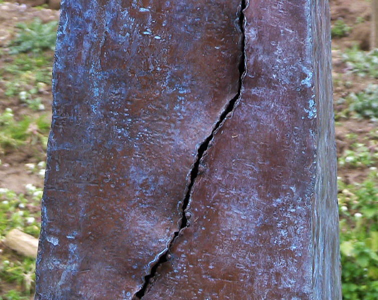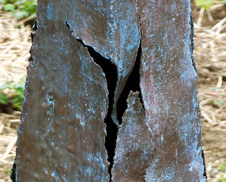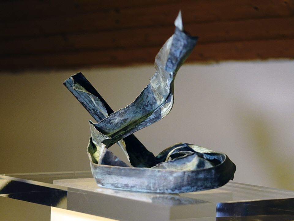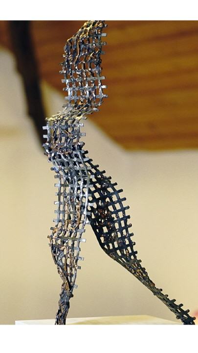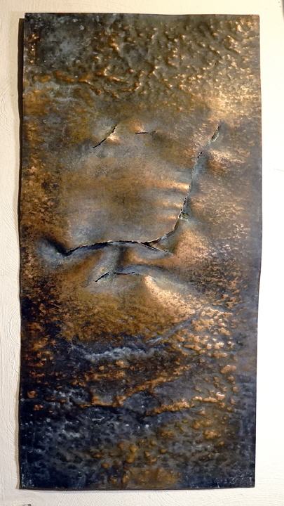 Die Künstlerin holt eine Weichheit,Wärme und Lebendigkeit heraus,die wir erstmal bei Metall nicht erwarten.Eine bewusste Konfrontation mit diesem Metall,eine bewusste Entscheidung und kein Zufall.Sie fühlt eine innere Hinzugezogenheit zu diesem Werkstoff,der lebt,anpassungsfähig ist und sich organisch berühren lässt.