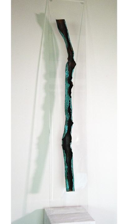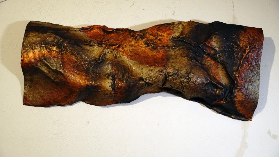 Die Arbeiten von Manuela Damian führen uns zu einem bestimmten Werkstoff-Metall -Kupfer.Es ist nicht die häufigste Disziplin für Künstlerinnen sich mit Materialien wie Metall oder Stein zu befassen.Das assozzieren wir häufig mit männlichen Künstler.